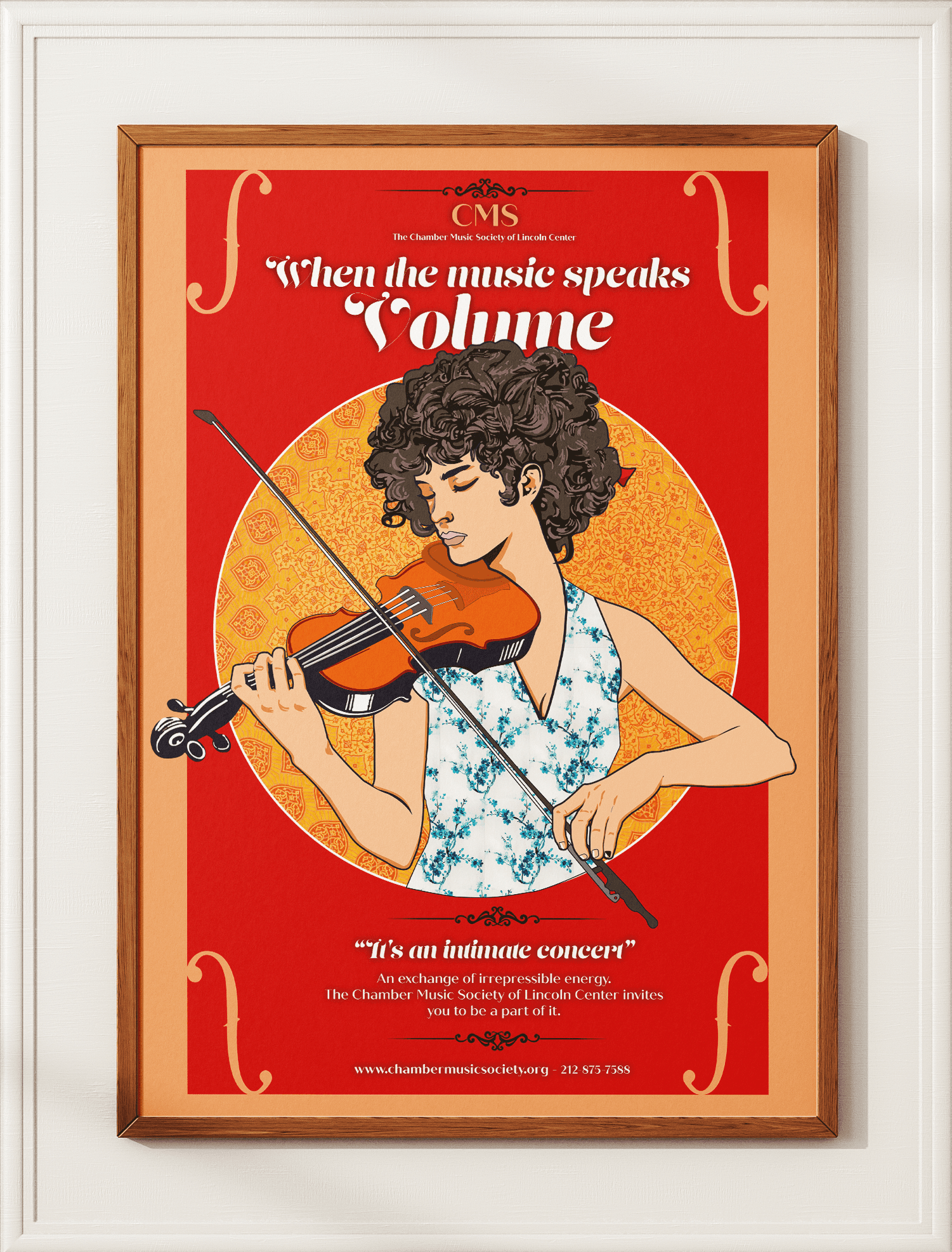 This project involved creating two design proposals for a poster promoting the Chamber Music Society of Lincoln Center. Each design was developed with a unique artistic direction. Both posters aim to celebrate the timeless appeal of chamber music while engaging distinct audience demographics.