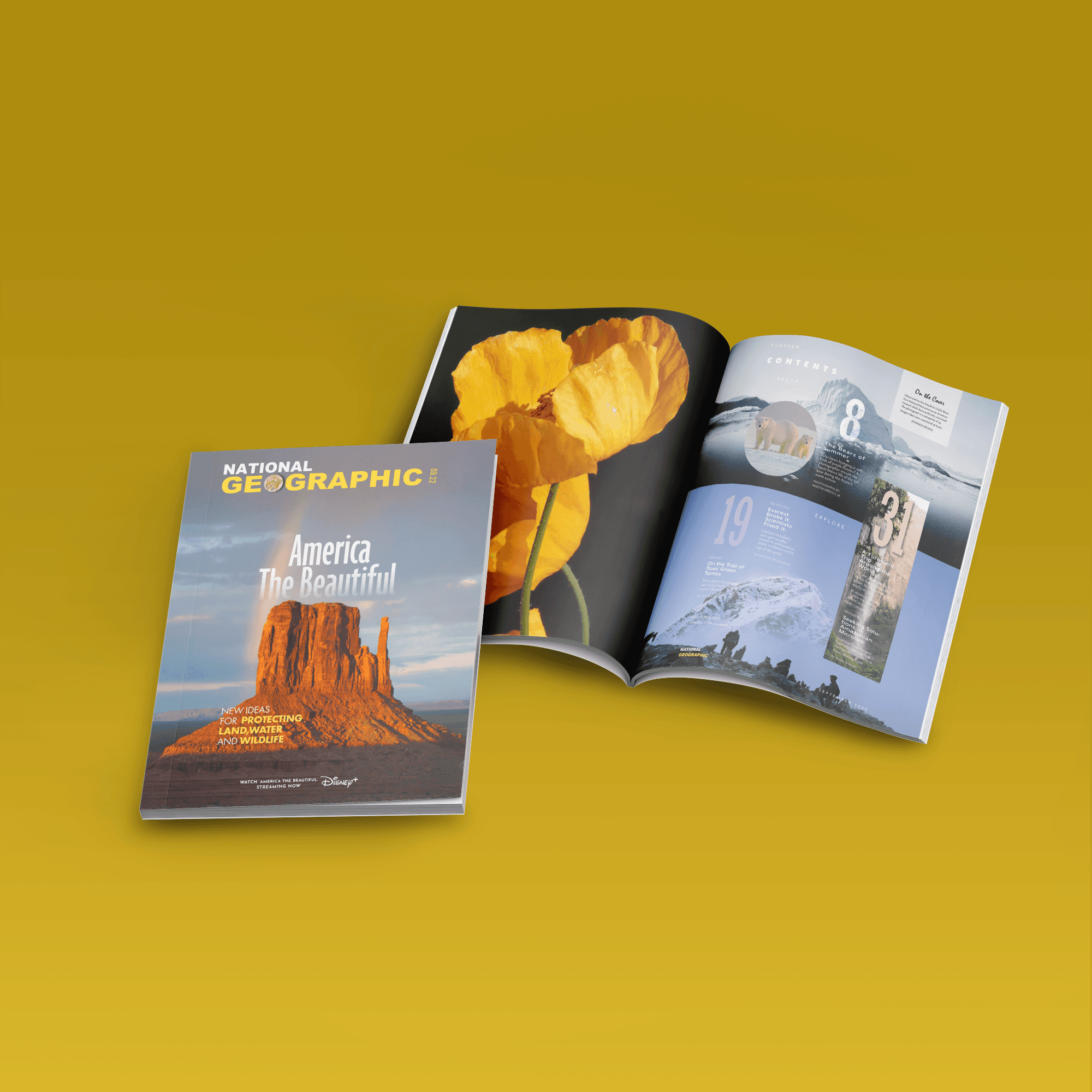 The redesigned book cover and table of contents achieved a modern and engaging visual identity, successfully reflecting National Geographic’s dedication to exploring and documenting the wonders of the natural world. This project demonstrated my ability to balance branding consistency with innovative design techniques, receiving positive feedback for its clarity and aesthetic refinement.
