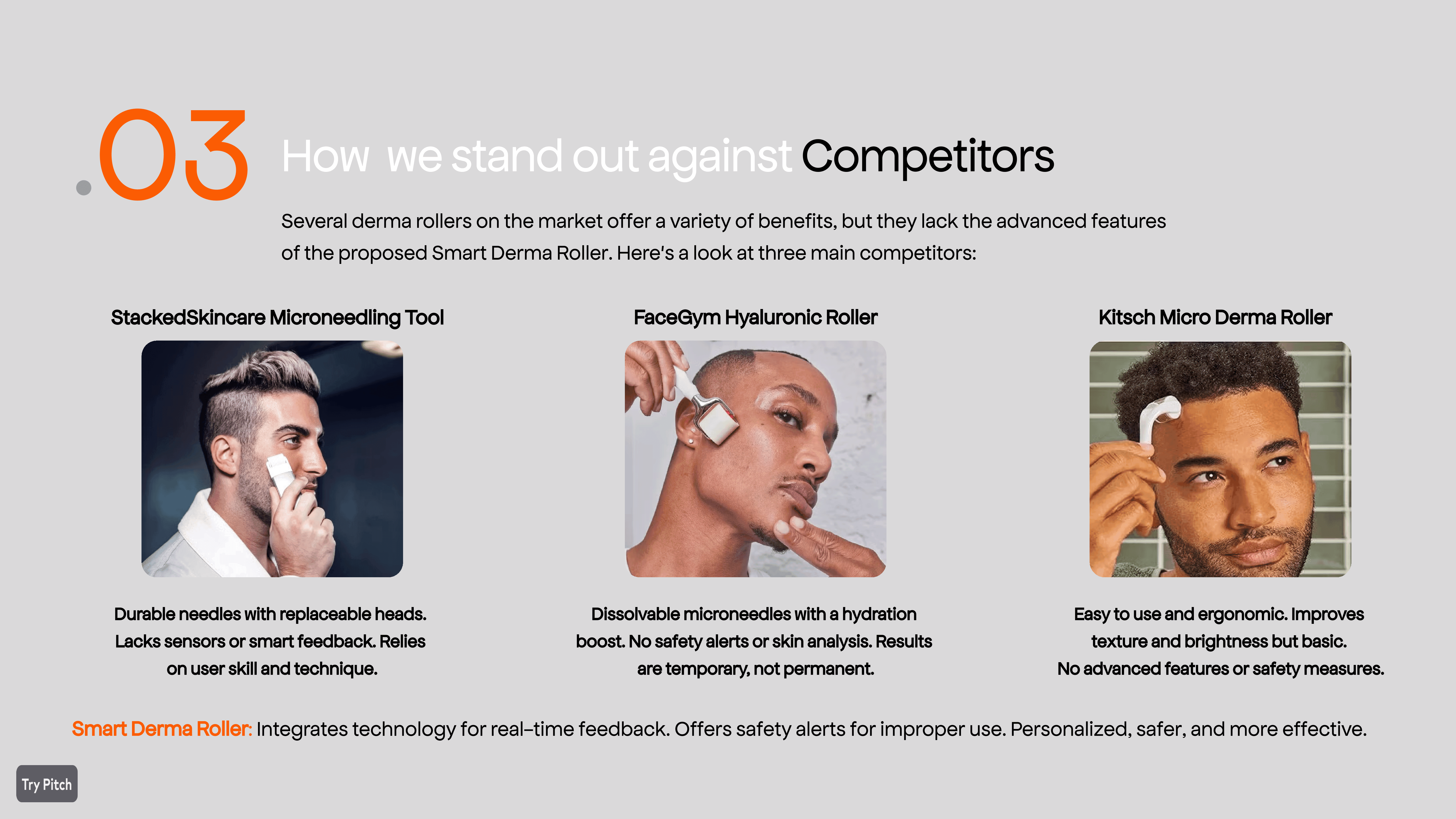 Traditional derma rollers often fall short—they lack personalization and proper safety features, leaving many men with inconsistent results. There was a clear need for a device that could adapt to individual skin and hair conditions while ensuring reliability and ease of use.